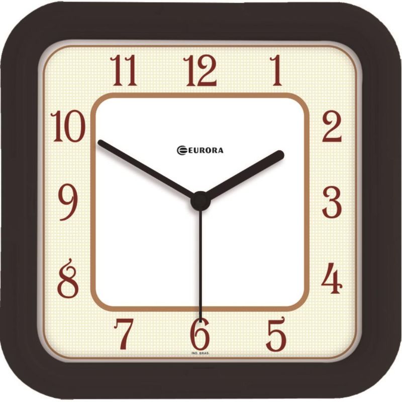 DESCRIÇÃO DO PRODUTO: Medidas: 22,6A x 22,6 L 4E cmCaracterísticas Técnicas:Usa pilha AAMecanismo Step (Tic-Tac)Produto Nacional Informações sobre o produto:Relógio de parede Base em Plástico InjetadoBotões de regulagem na parte traseira do produtoCor da Base: Preto Cor do Mostrador: Branco com detalhes em bege e números em marromIdeal para o dia-a-diaGarantia de 1 ano