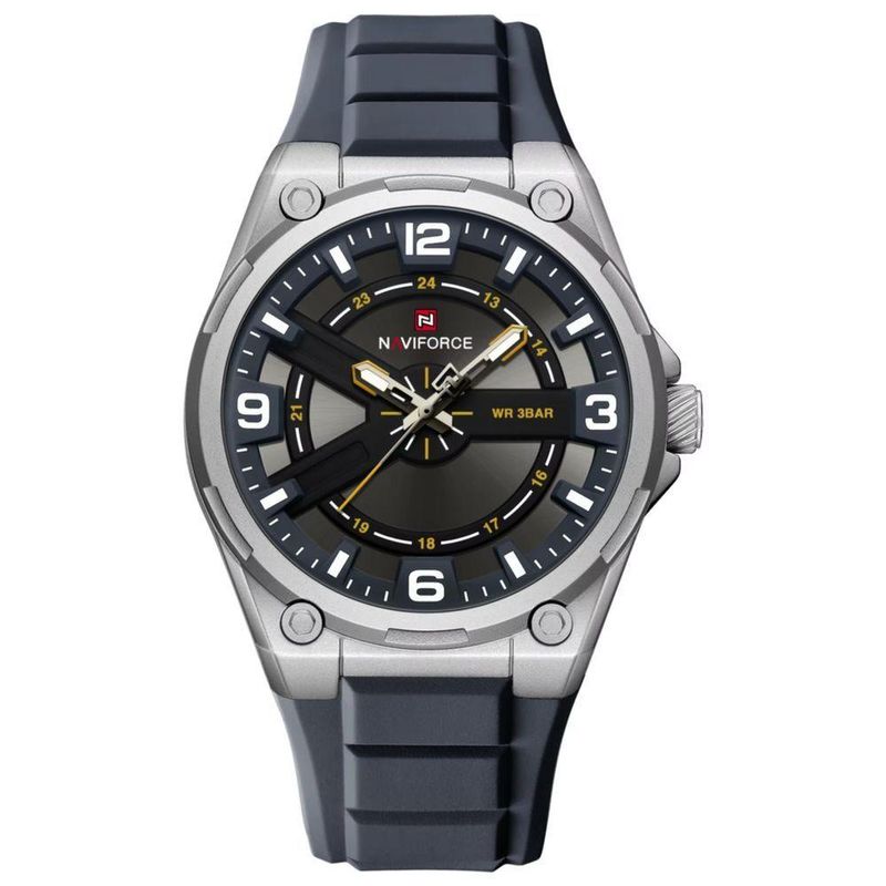 Relógio De Pulso Esportivo Masculino Silicone De Quartzo á Prova D´agua CinzaO relógio de pulso masculino inspirado no luxo conecta a elegância atemporal com a funcionalidade moderna. Feito para os que não abrem mão de estilo, este relógio une durabilidade com design sofisticado, tornando-se o acessório perfeito para qualquer ocasião. O design esportivo e a pulseira de silicone garantem conforto e resistência, enquanto a funcionalidade à prova d'água oferece tranquilidade em atividades diárias ou aventuras.Para homens que buscam afirmar sua presença, o mostrador expressivo e as mãos luminosas oferecem fácil leitura em diversas condições de luz. A combinação de efeitos anti-magnéticos e resistência a choques assegura que o relógio permaneça confiável e preciso. Ele não é só um instrumento de tempo, mas uma extensão de quem você é, proporcionando um toque de classe em sua rotina. Especificações [Alta resistência] Este relógio destacadamente resistente a choques e impactos, garantindo performance em todos os cenários. [Resistência à água] Com resistência de água de até 3Bar, você navega o dia sem preocupações, seja em um passeio no parque ou uma corrida na chuva. [Detalhes luxuosos] As mãos luminosas oferecem visibilidade em condições de pouca iluminação, sempre mantendo você atualizado. [Design ergonômico] A pulseira de silicone e o fecho de fivela proporcionam ajuste perfeito, combinando estilo arrojado ao conforto diário. [Funcionalidade robusta] Movimento em QUARTZ assegura precisão, encapsulado em um material de liga que equilibra resistência e leveza.