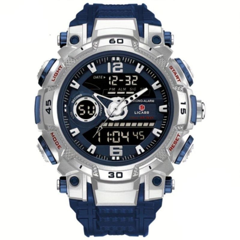 Relógio De Pulso Masculino Digital Led Multifuncional Desportivo De Quartzo Azul EscuroExplore o mundo dos relógio esportivo este acessório elegante combina a funcionalidade moderna com um design arrojado, ideal para homens que valorizam tanto a precisão quanto o estilo. A robustez da resina sintética se une à flexibilidade da correia de borracha para proporcionar um ajuste confortável enquanto você enfrenta seus desafios diários.Este relógio esportivo é mais do que apenas um marcador de tempo; é seu companheiro em aventuras. Equipado com um mostrador redondo e movido pelo confiável mecanismo de quartzo, garante precisão na medição do tempo. Seja na academia ou ao ar livre, o cronómetro integrado é perfeito para medir o tempo de suas atividades físicas, enquanto a resistência à água 5 ATM assegura que você continue no caminho sem preocupações, mesmo nos dias chuvosos. Especificações: [Design Inovador] O mostrador redondo e duplo explícito não só facilita a leitura, mas também impressiona com seu estilo moderno e funcional. [Materiais Robustos] Feito com resina sintética para o estojo e correia de borracha confortável, este relógio é sinônimo de durabilidade e conforto. [Resistência à Água] Com nível de resistência à água de 5 ATM, você pode nadar e enfrentar a chuva sem deixar a elegância de lado. [Tecnologia Precisa] Movido por relógios de quartzo, este modelo oferece uma precisão inigualável para aqueles que não gostam de perder tempo. [Energia Eficiente] Alimentado por uma bateria tipo botão, este relógio garante funcionamento eficiente, para que você não precise se preocupar com carregamentos frequentes.