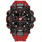 Relógio De Pulso Masculino Digital Led Multifuncional Desportivo De Quartzo Preto VermelhoExplore o mundo dos relógio esportivo este acessório elegante combina a funcionalidade moderna com um design arrojado, ideal para homens que valorizam tanto a precisão quanto o estilo. A robustez da resina sintética se une à flexibilidade da correia de borracha para proporcionar um ajuste confortável enquanto você enfrenta seus desafios diários.Este relógio esportivo é mais do que apenas um marcador de tempo; é seu companheiro em aventuras. Equipado com um mostrador redondo e movido pelo confiável mecanismo de quartzo, garante precisão na medição do tempo. Seja na academia ou ao ar livre, o cronómetro integrado é perfeito para medir o tempo de suas atividades físicas, enquanto a resistência à água 5 ATM assegura que você continue no caminho sem preocupações, mesmo nos dias chuvosos. Especificações: [Design Inovador] O mostrador redondo e duplo explícito não só facilita a leitura, mas também impressiona com seu estilo moderno e funcional. [Materiais Robustos] Feito com resina sintética para o estojo e correia de borracha confortável, este relógio é sinônimo de durabilidade e conforto. [Resistência à Água] Com nível de resistência à água de 5 ATM, você pode nadar e enfrentar a chuva sem deixar a elegância de lado. [Tecnologia Precisa] Movido por relógios de quartzo, este modelo oferece uma precisão inigualável para aqueles que não gostam de perder tempo. [Energia Eficiente] Alimentado por uma bateria tipo botão, este relógio garante funcionamento eficiente, para que você não precise se preocupar com carregamentos frequentes.