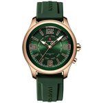 Relógio De Quartzo Masculino Mostrador Simples Casual 30m à Prova D'água Verde DouradoDesperte o seu estilo com o sofisticado relógio de quartzo masculino, o acessório perfeito para homens que valorizam design e funcionalidade. Este modelo ostenta um design simples, mas marcante, apresentando uma pulseira de silicone que oferece conforto e durabilidade para o uso diário. Com sua resistência à água de até 30 metros, este relógio torna-se um aliado inseparável para qualquer ocasião, seja um dia agitado no trabalho ou uma aventura ao ar livre.Além de sua capacidade de resistir a choques, o relógio vem equipado com uma função luminosa que facilita a leitura do mostrador em ambientes escuros. O visor de Hardlex protege o mostrador contra arranhões indesejados, enquanto o fecho de fivela de pino garante segurança e ajuste perfeito ao seu pulso. Aprofunde-se na experiência de usar um acessório de moda que combina perfeitamente com seu estilo de vida dinâmico e contemporâneo. Especificações [Design Sofisticado] O mostrador amplo, variando de 45 a 49 mm em diâmetro, proporciona uma leitura clara e um visual imponente, ideal para homens que desejam marcar presença. [Funcionalidade Impecável] Equipado com resistência à água de 3Bar, este relógio não só é estiloso, mas também prático e preparado para resistir às intempéries do cotidiano. [Conforto sem Igual] A pulseira de silicone, com largura entre 20 a 24 mm e comprimento de 25 cm, oferece um ajuste perfeito e confortável, alinhando-se com seu pulso com elegância e ergonômica precisão. [Durabilidade Garantida] O estojo de liga robusto, com espessura de 14 mm, confere durabilidade, enquanto o visor de Hardlex protege contra eventuais acidentes e prolonga a vida útil do relógio. [Eficiência Constante] Alimentado por um movimento QUARTZO japonês, a garantia de eficiência é embutida em seu design, acompanhando-o de maneira precisa e confiável dia após dia.