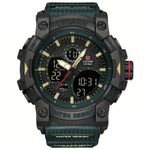 Relógio Desportivo Digital Masculino Duplo Display A Prova De água 5atm Estilo Casual Verde EscuroNão é apenas um acessório, é uma afirmação de estilo e funcionalidade para aqueles que lideram um estilo de vida ativo. Equipado com um robusto design esportivo, combina perfeitamente com um visual casual e moderno. Seu mostrador de exibição dupla, em detalhes ousados de preto e vermelho, é atraente e altamente funcional. Seja conquistando novos objetivos de tempo com seu cronómetro preciso, ou simplesmente mantendo-se atualizado com a função de data, este relógio está preparado para qualquer desafio diário.Além de sua estética arrojada,oferece resistência à água de 5ATM, permitindo que você enfrente chuvas inesperadas ou pratique esportes aquáticos ligeiros com confiança. Feito com materiais duráveis como resina sintética para o estojo e uma confortável pulseira de borracha, este relógio é a escolha ideal para aqueles que priorizam durabilidade e conforto no seu dia a dia ativo. Especificações:[Materiais Premium] Feita em borracha, a pulseira e o estojo em resina sintética garantem durabilidade e conforto, proporcionando uma experiência de uso agradável e uma estética esportiva.[Resistência Água] Com resistência à água de 5ATM, esta peça é perfeitamente preparada para acompanhar as suas aventuras, seja numa trilha, na chuva ou em atividades aquáticas leves.[Funcionalidade Avançada] Equipado com um sistema de exibição dupla, cronómetro de precisão e função de data, você está armado com todas as ferramentas certas para enfrentar qualquer desafio.[Movimento Preciso] Usando a tecnologia de movimento de quartzo, garante sempre um tempo preciso. Este recurso essencial mantém você no caminho certo para conquistar suas atividades diárias.[Design Adaptável] Combinando o estilo casual e desportivo, este relógio acessório é a adição perfeita para qualquer guarda-roupa moderno, tornando cada olhar um statement de moda.