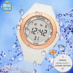 Relógio S725-02-1 Este relógio digital feminino SHUNWAY combina estilo esportivo e funcionalidade para acompanhá-la em todas as suas atividades. Com um design moderno na cor branca e detalhes elegantes em dourado rosé no aro, ele é perfeito tanto para praticar esportes quanto para compor looks casuais do dia a dia.Design e Funcionalidades:Mostrador Digital Claro: Exibe hora (12h/24h), minutos, segundos, data (dia da semana e dia do mês) de forma nítida e de fácil leitura.