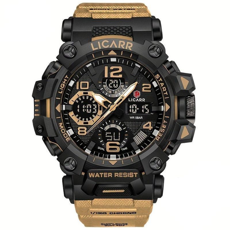 Relógio Digital Masculino à Prova De água 5atm Duplo Display Esportivo Quartzo BegeExperimente elegância e funcionalidade com o incrível. Este relógio é mais do que apenas um acessório; é uma declaração de estilo e utilidade, projetado para acompanhar você em cada momento do seu dia. Com um design otimizado para aventuras e para a vida cotidiana, possui uma caixa de resina sintética extremamente durável que protege o dispositivo, tornando-o ideal tanto para homens com estilo ativo quanto casual. Entre as características notáveis está seu inovador sistema de exibição dupla, que integra data e cronômetro para quem não abre mão da tecnologia e precisão em seus compromissos diários.Com estrutura robusta, este relógio aposta em uma pulseira de borracha preta que garante o máximo conforto e um visual esportivo imbatível. Resistente à água até 5 ATM, esse companheiro do tempo não se intimida com trilhas aquáticas, já prontamente preparado para quase todos os desafios. Com relógio de movimento de quartzo de alta precisão, ele garante que você esteja sempre na hora certa, deixando uma impressão duradoura de atenção aos detalhes e padrão de qualidade. Especificações: [Estilo de Vanguarda] O design desportivo deste relógio não apenas imprime atitude ao seu visual, mas também reitera sua personalidade aventureira e destemida. [Resistência à Água] Equipado com 5 ATM, este relógio esportivo está pronto para atividades aquáticas, seja para um mergulho ou apenas enfrentar a chuva. [Conforto Absoluto] A pulseira de borracha preta garante uma utilização tranquila, adequada tanto para a prática desportiva quanto para os compromissos do dia a dia. [Exibição Inovadora] Proporciona um método de visualização dupla integrado, ampliando a utilidade com data e cronômetro sempre à mão. [Durabilidade Inquestionável] A combinação de uma caixa de resina sintética e a inovação tecnológica com movimento de quartzo se traduz em um produto altamente durável.