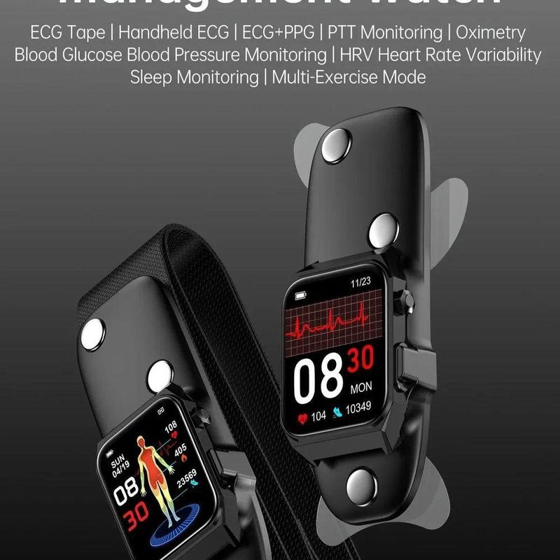 Relógio Ecg + Ppg , Sangue, Glicose, Pressão, Oxigênio, Smartwatch, 1,9 PretoO Relógio Digital Multifuncional é a fusão perfeita entre tecnologia e design esportivo, trazendo um universo de funcionalidades diretamente para o seu pulso. Equipado com tecnologia de ponta, ele oferece um acompanhamento detalhado da sua saúde e condicionamento físico, marcando presença como um item indispensável para quem busca mais controle e performance no dia a dia. Com uma tela touchscreen de 1,9 polegadas, sua interface intuitiva combina praticidade e eficiência, enquanto o design esportivo garante conforto e estilo.O smartwatch é a escolha ideal para aqueles que anseiam por inovar na maneira como monitoram seus dados vitais. Este acessório inteligente fornece métricas detalhadas de saúde, como ECG, PPG, frequência cardíaca, glicose, pressão sanguínea, oxigênio e temperatura corporal. Seja no trabalho, em uma corrida ou na academia, ele oferece informações valiosas para aprimorar seu bem-estar e performance esportiva, tudo com a conveniência de ser um acessório elegante e funcional. Especificações:[Tecnologia de ponta:] Monitoramento ECG + PPG para dados de saúde precisos e em tempo real, oferecendo uma compreensão aprofundada sobre sua saúde, facilmente acessível no seu pulso.[Design e conforto:] Com a pulseira de silicone, oferece um toque suave e ajuste confortável, acompanhando qualquer atividade sem perder o estilo.[Conectividade intuitiva:] Equipado com Bluetooth v5.1, garante uma conexão estável e rápida com seus dispositivos, permitindo fácil acesso a notificações e chamadas importantes.[Resistência e durabilidade:] Suporta IP68, o que torna o relógio resistente à poeira e a respingos, oferecendo confiabilidade em ambientes variados.[Funcionalidade estendida:] Além de medir saúde, possui alarme incorporado e a capacidade de efetuar chamadas telefônicas, tornando sua rotina mais prática e organizada.