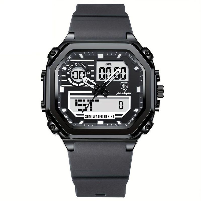 Relógio Esportivo Masculino Pulseira Em Silicone Display Híbrido Digital Analógico CinzaVença o tempo com estilo usando este acessório vai além do básico, mesclando um design casual moderno com funcionalidades impressionantes. Perfeito para guardar seu tempo com elegância, o relógio combina os aspectos clássicos do display analógico com a modernidade do digital, satisfazendo assim diferentes gostos em moda. Com um cronógrafo, alarme, calendário e uma luz de fundo para ambientes escuros, este relógio esportivo se destaca como um verdadeiro must-have em seu guarda-roupa.A pulseira em silicone, além de confortável, é ideal para qualquer ocasião, seja uma noite descontraída ou uma tarde ativa. A construção durável do relógio garante desempenho superior em todas as aventuras diárias. Além disso, é resistente à água, o que significa que você pode usá-lo em praticamente qualquer ambiente sem se preocupar. Este acessório é a combinação perfeita de funcionalidade e estilo para o cotidiano moderno. Especificações[Faixa etária aplicável] Adequado para pessoas com mais de 18 anos, garantindo que a estética e a funcionalidade se alinhem com as tendências mais recentes.[Material da Pulseira] Feita de gel de sílica, proporcionando conforto e resistência que acompanha você nas mais diversas situações.[Design inovador] O corpo do relógio é fabricado em liga robusta, garantindo durabilidade e uma aparência elegante que exala sofisticação.[Movimento preciso] Alimentado por um movimento digital de alta precisão, assegurando que você não perca o compasso de nenhum segundo do seu dia.[Funcionalidade híbrida] Beneficie-se do duplo display digital-analógico, oferecendo a conveniência da leitura digital com a elegância do mostrador analógico.