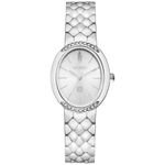 DESCRIÇÃO DO PRODUTO: Caixa de MetalPulseira de Metal estilo braceleteVidro de Cristal MineralFundo PressãoResistente à Água Até 5 AtmDiâmetro / Largura da Caixa: 26.00 MM x 32.00 MMFunções: Analógico, BraceleteMostrador Prateadi com pedrasAlimentação do Maquinário: BateriaMaquina Japonesa Garantia de 1 Ano