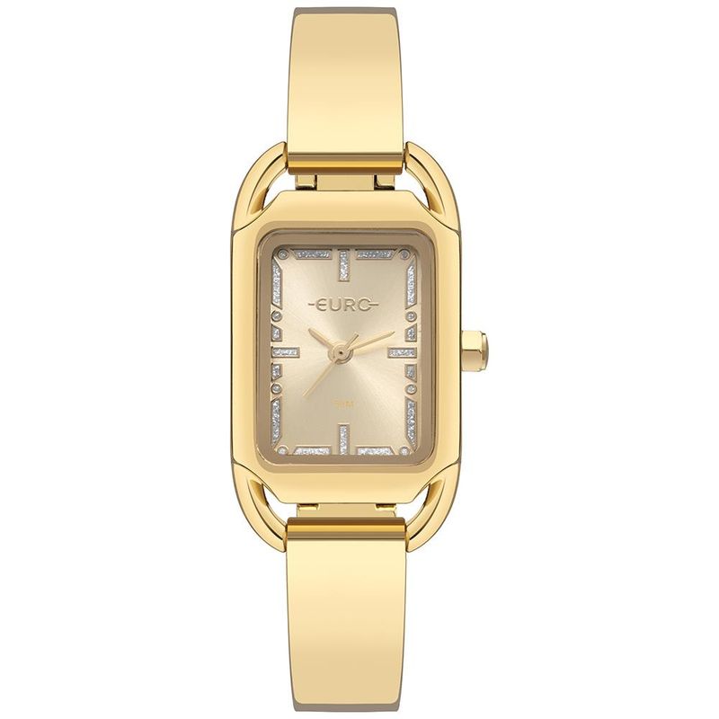 DESCRIÇÃO DO PRODUTO: Caixa de MetalPulseira de Metal estilo braceleteVidro de Cristal MineralFundo PressãoResistente à Água Até 5 AtmDiâmetro / Largura da Caixa: 20.00 MM x 28.00 MMFunções: Analógico, BraceleteMostrador dourado com pedrasAlimentação do Maquinário: BateriaMaquina Japonesa Garantia de 1 Ano