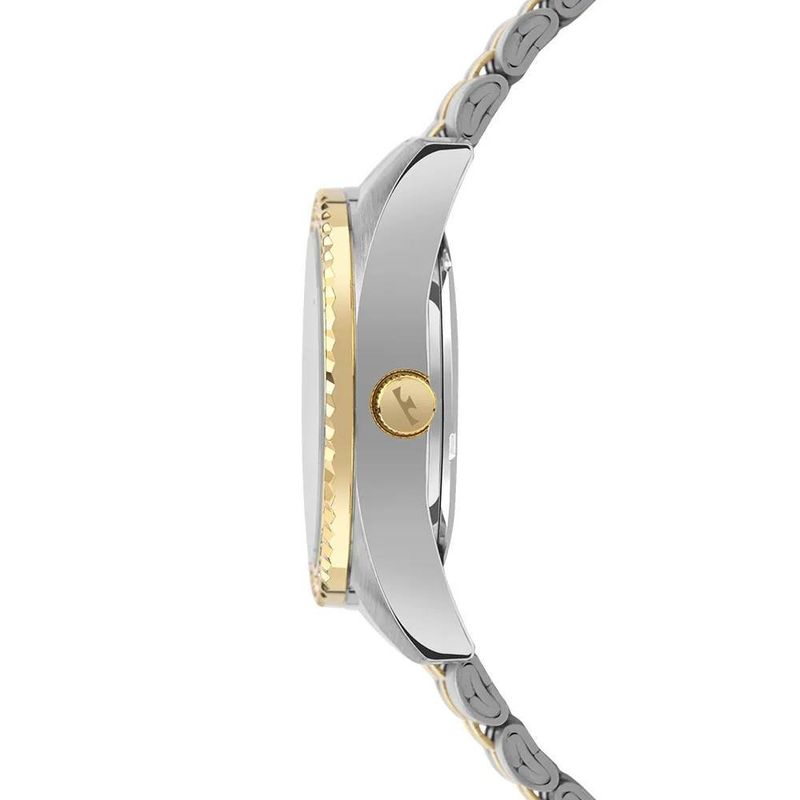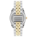 O novo modelo da linha Riviera destaca-se pelo design clássico aliado a detalhes sofisticados. O aro externo com acabamento corrugado recebe aplicação de pedras, trazendo brilho e elegância ao pulso. O mostrador texturizado com marcadores tridimensionais de pedras adiciona profundidade, enquanto a assinatura da linha e a lupa de calendário completam a identidade da coleção. Além disso, o modelo apresenta resistência à água de 50 metros. Compre online seu Relógio Feminino Technos Riviera Bicolor 2117LFS/1K original. Acompanha certificado de garantia, estojo e manual. Enviamos para todo o Brasil. Referência de Fábrica: 2117LFS/1K Marca: Technos Gênero: Feminino Tamanho da caixa: 33mm Cor da caixa: Bicolor Cor da pulseira: Bicolor Cor do mostrador: Prata Mecanismo: Analógico Material da Pulseira: Aço Inox Material da Caixa: Aço Inox Nível de Resistência à Água: 5 Atm Todos os relógios são originais! Acompanham certificado de garantia do fabricante, estojo, manual em português e nota fiscal. Veja mais modelos de Relógios Masculinos.