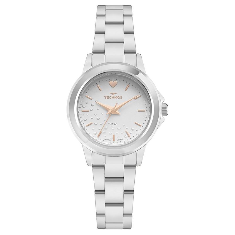 A linha Trend apresenta um novo modelo temático, com aplicação de corações em efeito perolado e elementos temáticos. Seu mostrador na cor prata é de fácil leitura e em duas camadas. Produto 100% em aço inoxidável, banhado em prata, com máquina quartz Japonesa Miyota e resistência à água de 50 metros. Compre online seu Relógio Feminino Technos Trend Prata 2036NBK/1K Original. Acompanha certificado de garantia, estojo e manual. Enviamos para todo o Brasil. Referência de Fábrica: 2036NBK/1K Marca: Technos Mecanismo: Analógico Material do Vidro: Cristal Mineral Material da Caixa: Aço Inox Material da Pulseira: Aço Inox Cor da caixa: Prata Cor da Pulseira: Prata Cor do mostrador: Prata Resistência a Água: 5 atm Todos os nossos relógios são entregues em embalagem original e possuem certificado de garantia. Aproveite e veja todos os nossos modelos de relógios.