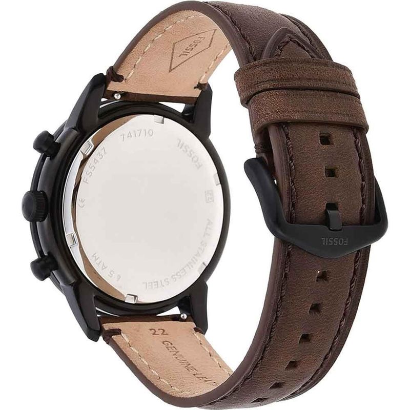Descrição do Produto: Caixa de Aço InoxidávelPulseira de Couro Legítimo MarromVidro de Cristal MineralFundo RosqueadoResistente à Água 5 AtmDiâmetro / Largura da Caixa: 44.00 MMAltura da Caixa: 13.00 MMLinha: Fossil GrantFunções: Analógico, CronógrafoMostrador Marrom com detalhes em roséAlimentação do Maquinário: BateriaGarantia de 2 Anos