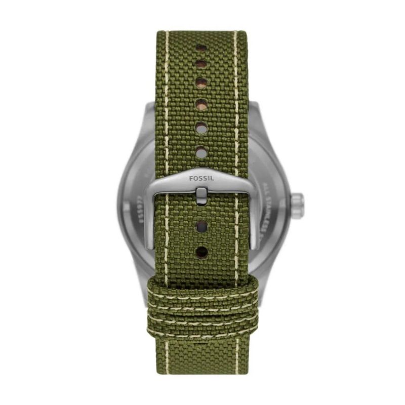 Descrição do Produto: Caixa de Aço InoxidávelPulseira de Couro Legítimo restido de poliamida verde olivaVidro de Cristal MineralFundo RosqueadoResistente à Água 10 AtmDiâmetro / Largura da Caixa: 46.00 MMAltura da Caixa: 12.00 MMLinha: Fossil DefenderFunções: Analógico, Solar, Calendário Duplo (Com opção dos dias da semana em inglês e espanhol)Mostrador Preto com Todos os NúmerosAlimentação do Maquinário: Energia SolarGarantia de 2 Anos