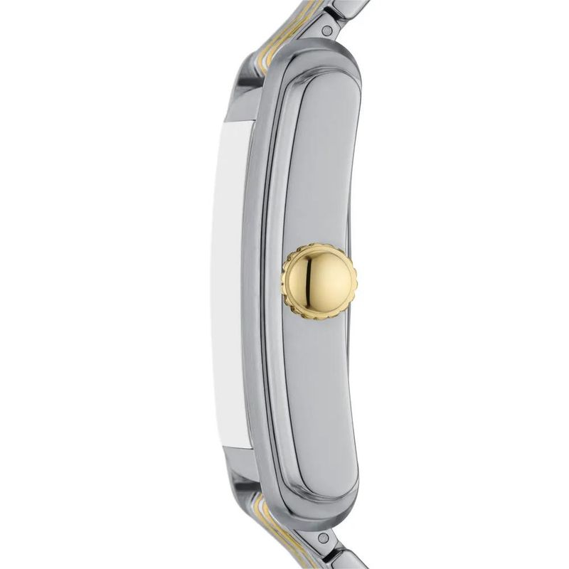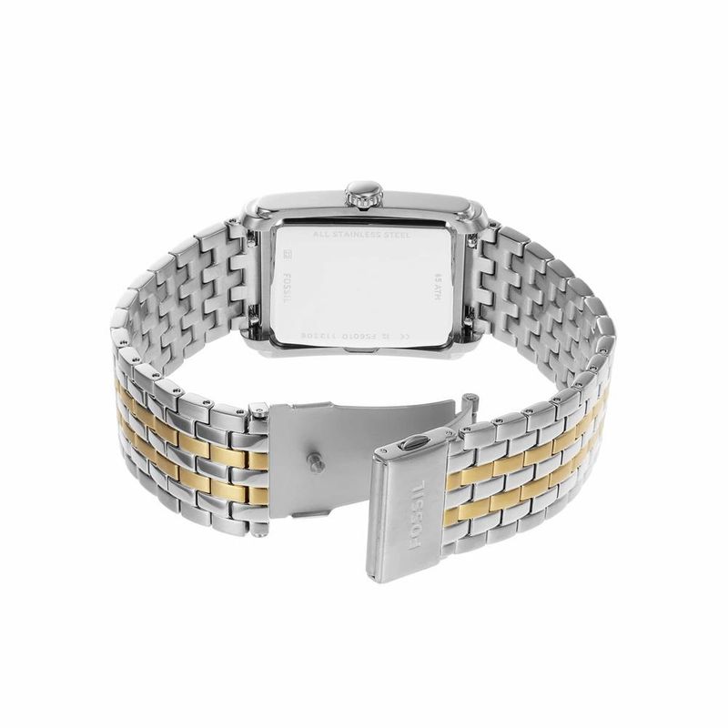 Descrição do Produto: Caixa de Aço InoxidávelPulseira de Aço InoxidávelVidro de Cristal MineralFundo de PressãoResistente à Água 5 AtmDiâmetro / Largura da Caixa: 30.00 MM x 34.00 MMAltura da Caixa: 10.00 MMLinha: Fossil CarrawayFunções: AnalógicoMostrador Azul com algarismos romanos e detalhes em douradoAlimentação do Maquinário: BateriaPrateado com DouradoGarantia de 2 Anos