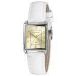 DESCRIÇÃO DO PRODUTO: Caixa: MetalPulseira: Couro Ecológico BrancaMedida da caixa: 25 mm x 28 mmVidro: Cristal MineralResistência à água: 50mFunções: AnalógicoMostrador Dourado com todos os númerosFundo de PressãoAlimentação do maquinário: BateriaMaquinário JaponêsGarantia de 1 Ano