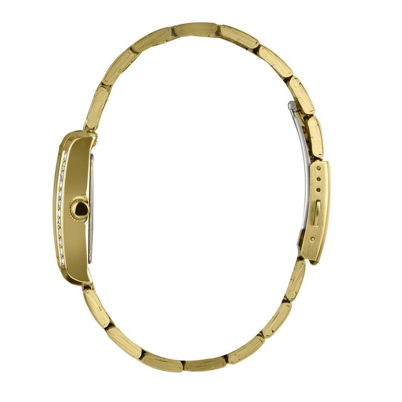 DESCRIÇÃO DO PRODUTO: Caixa: MetalPulseira: AçoMedida da caixa: 26 mm x 30 mmVidro: Cristal MineralResistência à água: 50mFunções: AnalógicoMostrador DouradoAro externo com pedrasFundo de PressãoAlimentação do maquinário: BateriaMaquinário JaponêsGarantia de 1 Ano