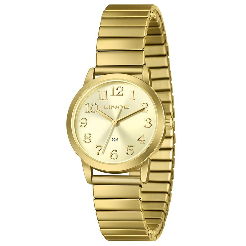 DESCRIÇÃO DO PRODUTO: Caixa: MetalPulseira: Aço MolaMedida da caixa: 32 mmVidro: Cristal MineralResistência à água: 50mFunções: AnalógicoMostrador Dourado com todos os númerosFundo de PressãoAlimentação do Maquinário: BateriaMaquinário JaponêsGarantia de 1 Ano