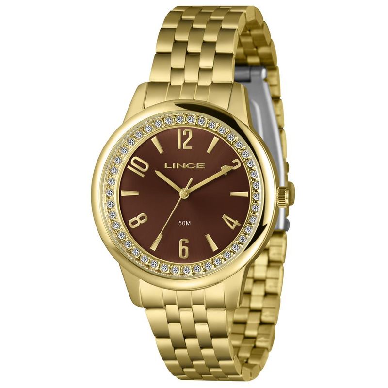 DESCRIÇÃO DO PRODUTO: Caixa: MetalPulseira: AçoMedida da caixa: 40 mmVidro: Cristal MineralResistência à água: 50mFunções: AnalógicoMostrador marrom com números e pedrasFundo de PressãoAlimentação do Maquinário: BateriaMaquinário JaponêsGarantia de 1 Ano