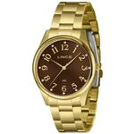 DESCRIÇÃO DO PRODUTO: Caixa: MetalPulseira: AçoMedida da caixa: 40 mmVidro: Cristal MineralResistência à água: 50mFunções: AnalógicoMostrador marrom com todos os números e pedrasFundo de PressãoAlimentação do Maquinário: BateriaMaquinário JaponêsGarantia de 1 Ano