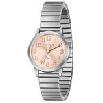 DESCRIÇÃO DO PRODUTO: Caixa: MetalPulseira: Aço MolaMedida da caixa: 32 mmVidro: Cristal MineralResistência à água: 50mFunções: AnalógicoMostrador Rosé com todos os númerosFundo de PressãoAlimentação do Maquinário: BateriaMaquinário JaponêsGarantia de 1 Ano