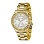 - Resiste à água: 3 ATM- Composição do Vidro: cristal mineral- Material da Caixa: metal- Material da Pulseira: aço- Duração média da bateria: 1 ANOMedidas aproximadas:- Largura da caixa, incluindo pino: 4cm- Diâmetro do visor: 3cm- Espessura da caixa: 1cm- Comprimento da pulseira: 20cmInformações Adicionais:Tamanho: únicoCor: douradoModelo: Relógio Feminino Lince LRG4339L S2KXMaterial: açoDetalhes adicionais: coroa com strassMarca: LinceFoto realizada com tamanho: únicoCategoria: Relógio -> Feminino -> Aço