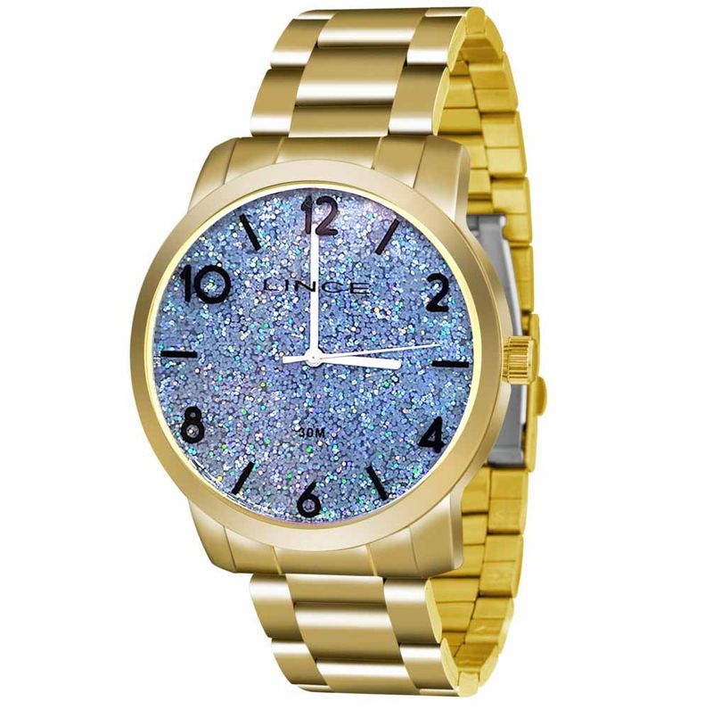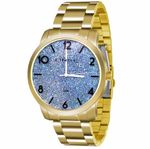 Sistema de energia: Bateria Coroa: Simples Tampa posterior: Pressão Sistema de fecho: Tipo 6 Resistência à água: 30 m Visor: Cristal Mineral Material da tampa: Aço Inoxidável Material da caixa: Metal + IP Gold Material da pulseira: Aço Inoxidável + IP Gold Cor do mostrador: Azul Cor da caixa: Dourado Cor da pulseira: Dourado Cor dos detalhes: Dourado Acabamento: Polido Comprimento (A): 210 mm Largura da Caixa com Coroa/Botões (B): 46,1 mm Largura da Pulseira (C): Espessura (D): 9,9 mm Peso (X): 122 g