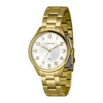 Relógios Lince se notabilizando pela concepção e construção de artigos com qualidade e beleza. Marca: Lince Gênero: Feminino Visor: Branco Vidro: Cristal mineral Resiste à água: 5ATM Diâmetro da Caixa: 40mm Caixa: Aço Cor da Caixa: Dourado Pulseira: Aço Cor da Pulseira: Dourado