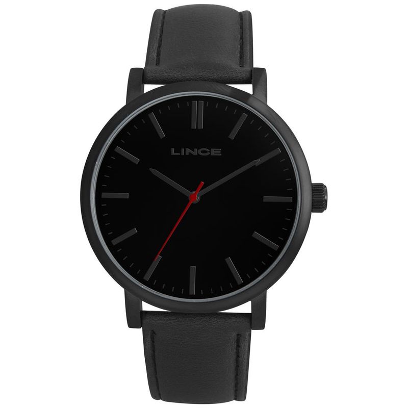 DESCRIÇÃO DO PRODUTO: Marca: LinceGênero: MasculinoVidro: Cristal MineralFunções: AnalógicoResistência à Água: 50 mCaracterísticas: com caixa metal e pulseira de Couro Ecológico PretaDiâmetro da Caixa: 46 mmFundo de PressãoAlimentação do Maquinário: BateriaMostrador Preto com detalhes vermelhoGarantia de 1 ano