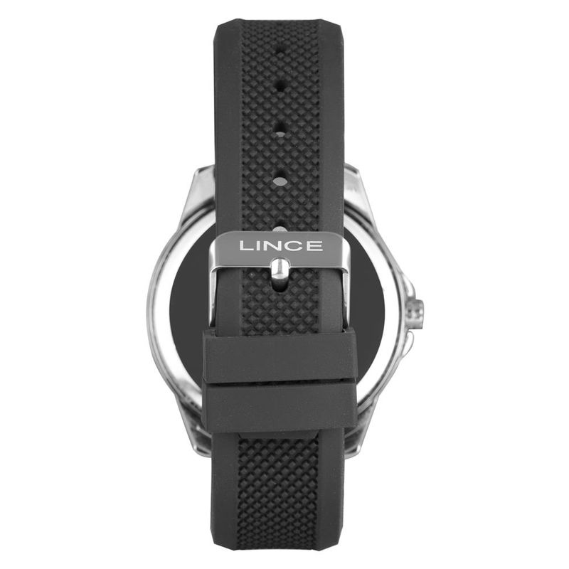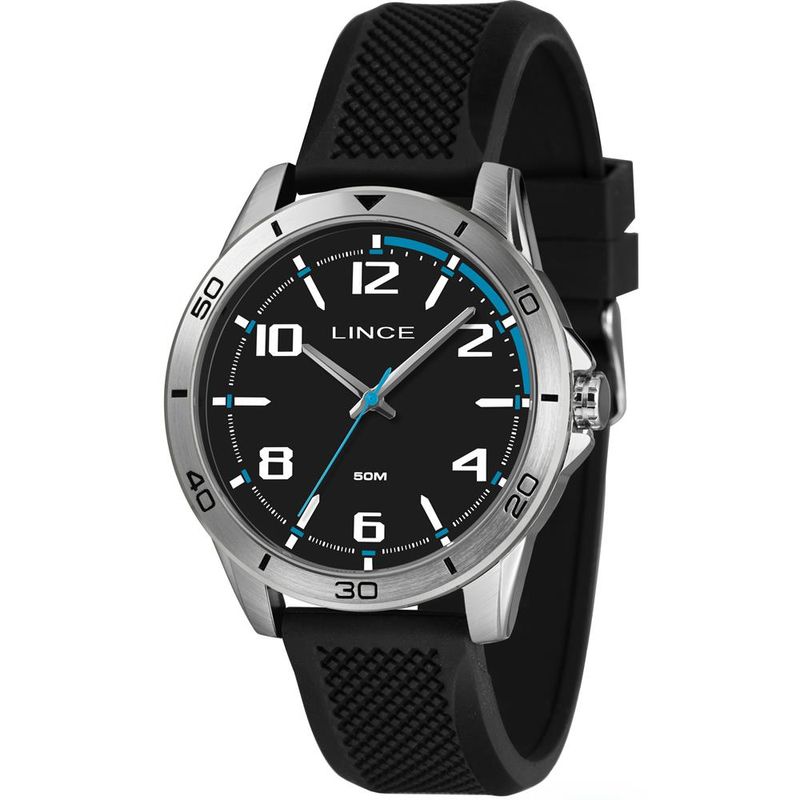 DESCRIÇÃO DO PRODUTO: Marca: LinceGênero: MasculinoVidro: Cristal MineralFunções: AnalógicoResistência à Água: 50 mCaracterísticas: com caixa metal e pulseira de Silicone PretaDiâmetro da Caixa: 46 mmFundo de PressãoAlimentação do Maquinário: BateriaMostrador preto com númerosAro Fixo PrateadoGarantia de 1 ano