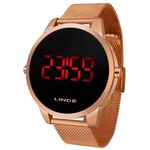Relógios Lince se notabilizando pela concepção e construção de artigos com qualidade e beleza. Marca: Lince Gênero: Feminino Visor: Preto com digitais vermelho Vidro: Cristal mineral Resiste à água: 5ATM Caixa: Metal Pulseira: Aço Características: Digital, calendário