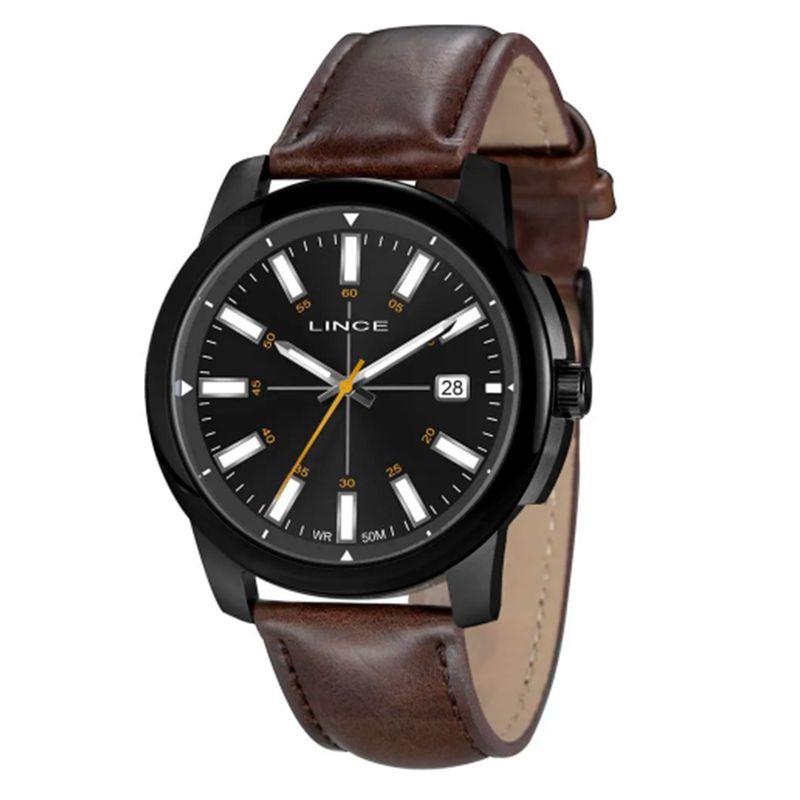 Marca: LinceGênero: MasculinoVidro: Cristal MineralFunções: Analógico, CalendárioResistência à Água: 50 mCaracterísticas: com caixa metal e pulseira de Couro Ecológico MarromDiâmetro da Caixa: 46 mmFundo de PressãoAlimentação do Maquinário: BateriaMostrador preto com detalhes em laranja