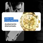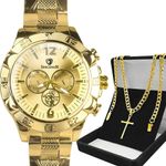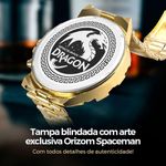 Relogio Masculino Dagua Banhado Prova Aco + Crucifixo Cordao Casual Presente Aço Inoxidavel DragaoKit Masculino Orizom Spaceman DragonDescrição do Produto:O Kit Orizom Spaceman Dragon é a escolha perfeita para homens que buscam elegância, personalidade e um visual marcante. Composto por peças de alta qualidade em aço inoxidável banhado, este conjunto exclusivo é ideal para presentear em datas especiais ou para valorizar o próprio estilo. O que acompanha o kit:- Relógio Masculino Analógico Orizom Spaceman Dragon: Fabricado em aço inoxidável com banho dourado de alto padrão, este relógio possui um design sofisticado e robusto, perfeito para uso em diversas ocasiões. Com mostrador dourado elegante e tampa traseira blindada com arte exclusiva de dragão, este relógio é à prova dágua, proporcionando segurança e durabilidade no uso diário.- Corrente Masculina Grumet: Esta corrente em aço inoxidável banhado dourado possui aproximadamente 60 cm de comprimento e um estilo robusto e elegante, que complementa o visual com requinte.- Pingente Crucifixo: Pequeno e confeccionado em aço inoxidável banhado dourado, este pingente em formato de cruz é uma peça de significado e expressão, ideal para compor um visual sofisticado e discreto. Observação: Este kit não acompanha caixa para os acessórios. As imagens com caixa são meramente ilustrativas para melhor apresentação das peças. O Kit Orizom Spaceman Dragon é a escolha certa para quem valoriza qualidade, estilo e um visual diferenciado. Ideal para presentear em ocasiões como aniversários, Dia dos Pais, Natal ou para surpreender alguém especial com um conjunto marcante e de alto padrão. Adquira já o seu Kit Masculino Orizom Spaceman Dragon e destaque-se com elegância e personalidade!