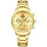 Relogio Masculino Esportivo Casual Quartzo Em Aço Inoxidável 30m À Prova Da Água Dourado Descrição do Produto:Descubra a perfeita combinação de estilo e funcionalidade com o relogio.Este sofisticado relógio de quartzo foi projetado para o homem moderno que valoriza tanto a moda quanto a durabilidade. Com uma pulseira de aço inoxidável de alta qualidade, o relógio é resistente à água e a choques, garantindo que esteja sempre preparado para qualquer aventura. O design elegante e contemporâneo adiciona um toque de classe ao seu visual diário, enquanto a funcionalidade prática atende às suas necessidades diárias.Seja para uma reunião de negócios, um evento casual ou uma atividade ao ar livre, se adapta perfeitamente a qualquer ocasião. Com seu mostrador de alta definição protegido por Hardlex, você pode confiar na precisão e longevidade deste acessório. Deixe-o ser seu companheiro de confiança, refletindo sua personalidade audaciosa e sofisticada. Especificações:[Design elegante e moderno]: O estojo com espessura de 12 mm e diâmetro de 40 a 44 mm cria uma presença robusta e refinada no pulso, tornando-o o acessório perfeito para o homem moderno que aprecia estilo e função.[Funcionalidades avançadas]: Equipado com cronômetro, calendário completo e recurso de data automática, este relógio não é apenas um acessório estético, mas também uma ferramenta utilitária que mantém você pontual e organizado.[Materiais de alta qualidade]: A pulseira de aço inoxidável combinada com o visor de Hardlex oferece durabilidade e resistência, garantindo que o relógio suporte o desgaste cotidiano sem comprometer a aparência.[Resistência à água e choques]: Com resistência à água de até 30 metros (3 bar) e design à prova de choque, você pode usá-lo com confiança em ambientes úmidos e dinâmicos, sem preocupação com danos.[Conforto e ajuste]: O fecho de bracelete e o comprimento de 24 cm da pulseira proporcionam um ajuste seguro e confortável, ideal para uso prolongado sem desconforto.