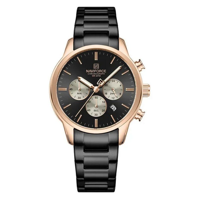 Relogio Masculino Esportivo Casual Quartzo Em Aço Inoxidável 30m À Prova Da Água Preto Rose Descrição do Produto:Descubra a perfeita combinação de estilo e funcionalidade com o relogio.Este sofisticado relógio de quartzo foi projetado para o homem moderno que valoriza tanto a moda quanto a durabilidade. Com uma pulseira de aço inoxidável de alta qualidade, o relógio é resistente à água e a choques, garantindo que esteja sempre preparado para qualquer aventura. O design elegante e contemporâneo adiciona um toque de classe ao seu visual diário, enquanto a funcionalidade prática atende às suas necessidades diárias.Seja para uma reunião de negócios, um evento casual ou uma atividade ao ar livre, se adapta perfeitamente a qualquer ocasião. Com seu mostrador de alta definição protegido por Hardlex, você pode confiar na precisão e longevidade deste acessório. Deixe-o ser seu companheiro de confiança, refletindo sua personalidade audaciosa e sofisticada. Especificações:[Design elegante e moderno]: O estojo com espessura de 12 mm e diâmetro de 40 a 44 mm cria uma presença robusta e refinada no pulso, tornando-o o acessório perfeito para o homem moderno que aprecia estilo e função.[Funcionalidades avançadas]: Equipado com cronômetro, calendário completo e recurso de data automática, este relógio não é apenas um acessório estético, mas também uma ferramenta utilitária que mantém você pontual e organizado.[Materiais de alta qualidade]: A pulseira de aço inoxidável combinada com o visor de Hardlex oferece durabilidade e resistência, garantindo que o relógio suporte o desgaste cotidiano sem comprometer a aparência.[Resistência à água e choques]: Com resistência à água de até 30 metros (3 bar) e design à prova de choque, você pode usá-lo com confiança em ambientes úmidos e dinâmicos, sem preocupação com danos.[Conforto e ajuste]: O fecho de bracelete e o comprimento de 24 cm da pulseira proporcionam um ajuste seguro e confortável, ideal para uso prolongado sem desconforto.