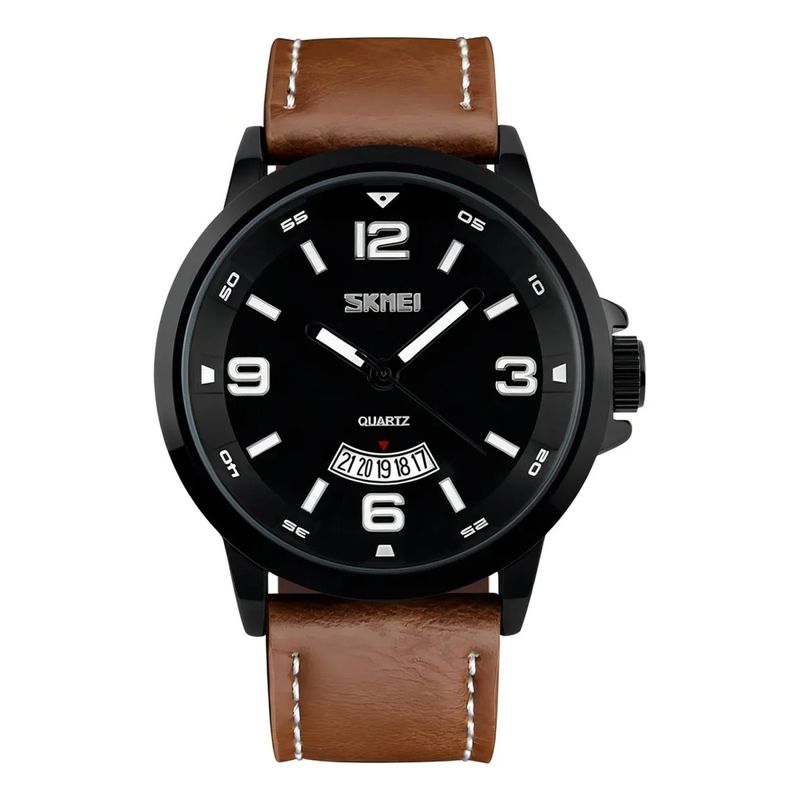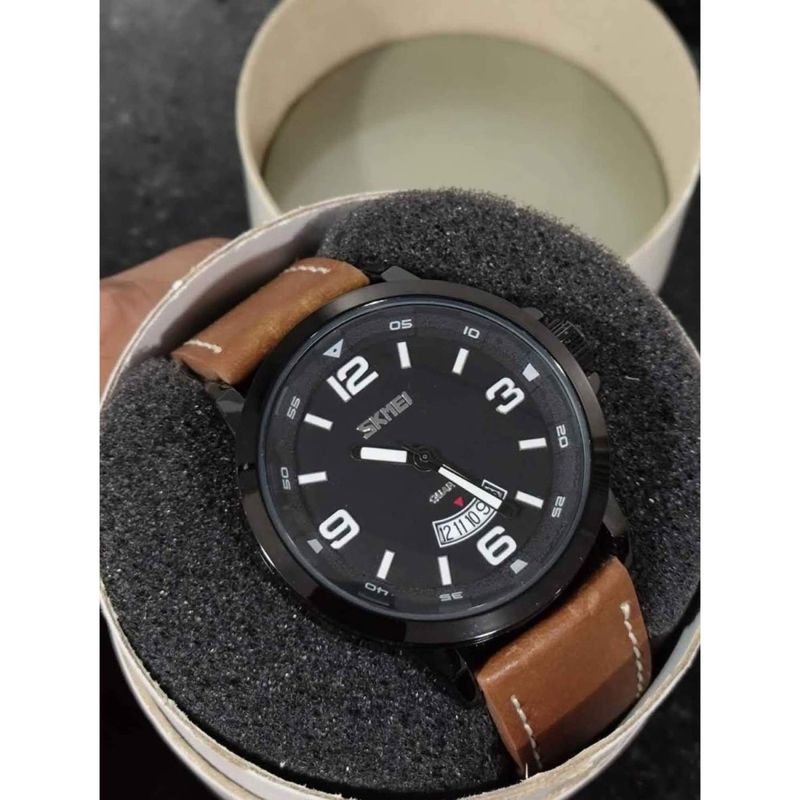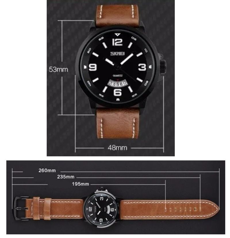 Relógio Masculino Skmei Analógico 9115 - Marrom E Preto - Clássico e Moderno - Elegante - Esse modelo é ideal para quem procura um relógio versátil, que combina com qualquer ocasião. Perfeito para usar no dia-a-dia conciliando a praticidade e modernidade. Uma ótima opção para agradar o parceiro com um presente. Características:Analógico: SimHorário: Um Horário Mostra o dia do mês: SimResistente à água: Sim (3atm)Respingos: Sim Chuva: Sim Lavar o carro: Sim Tipo de feche: Fecho dobrável com botão e travaMaterial da caixa: MetalMaterial da pulseira: MetalCaracterística do vidro: Cristal Mineral Características Gerais do Produto: