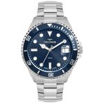 O Relógio Technos Acqua apresenta mostrador analógico com data na posição de 3 horas na cor azul, lupa de calendário e lente antireflexo, além de contar com marcadores de hora luminescentes, aro giratório unidirecional com aplicação de cor e coroa rosqueada para auxiliar em aventuras submersas, com resistência à água de até 150 metros. Produto 100% em aço inoxidável, banhado em prata, com pulseira de aço inoxidável em 3 links. Compre online seu Relógio Masculino Technos Acqua Prata 2415EG/1A Original. Acompanha certificado de garantia, estojo e manual. Enviamos para todo o Brasil. Referência de Fábrica: 2415EG/1A Marca: Technos Mecanismo: Analógico Material da pulseira: Aço Inox Material da caixa: Aço Inox Cor da pulseira: Prata Cor da caixa: Prata Cor do mostrador: Azul Formato da Caixa: Redondo Largura da caixa: 4,5 cm Resistência à água: 5 Atm Todos os nossos relógios são entregues em embalagem original e possuem certificado de garantia. Aproveite e veja todos os nossos modelos de relógios