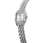 DESCRIÇÃO DO PRODUTO: Caixa de MetalPulseira de AçoVidro de Cristal MineralFundo de PressãoResistente à Água 3 AtmDiâmetro / Largura da Caixa: 23.00 MM x 23.00 MMFunção: AnalógicoAlimentação do Maquinário: BateriaMostrador Prateado com pedrasGarantia de 1 Ano