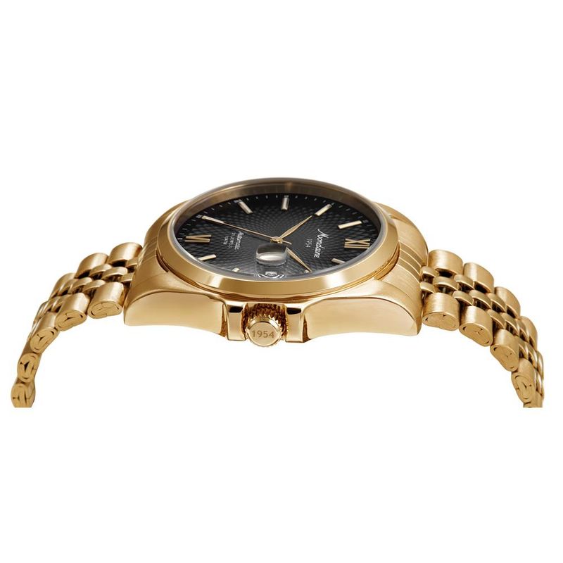 DESCRIÇÃO DO PRODUTO: Caixa de Aço InoxidávelPulseira de Aço InoxidávelVidro de Cristal MineralFundo RosqueadoResistente à Água 10 AtmDiâmetro / Largura da Caixa: 40.00 MMAltura da Caixa: 12.00 MMFunção: Automático, Calendário com lupaMostrador Preto Degradê com Algarismos Romanos e Inscrição Mondaine 1954 (Logo Clássica da marca)Alimentação do Maquinário: Mecânico (Automático)Garantia de 1 Ano