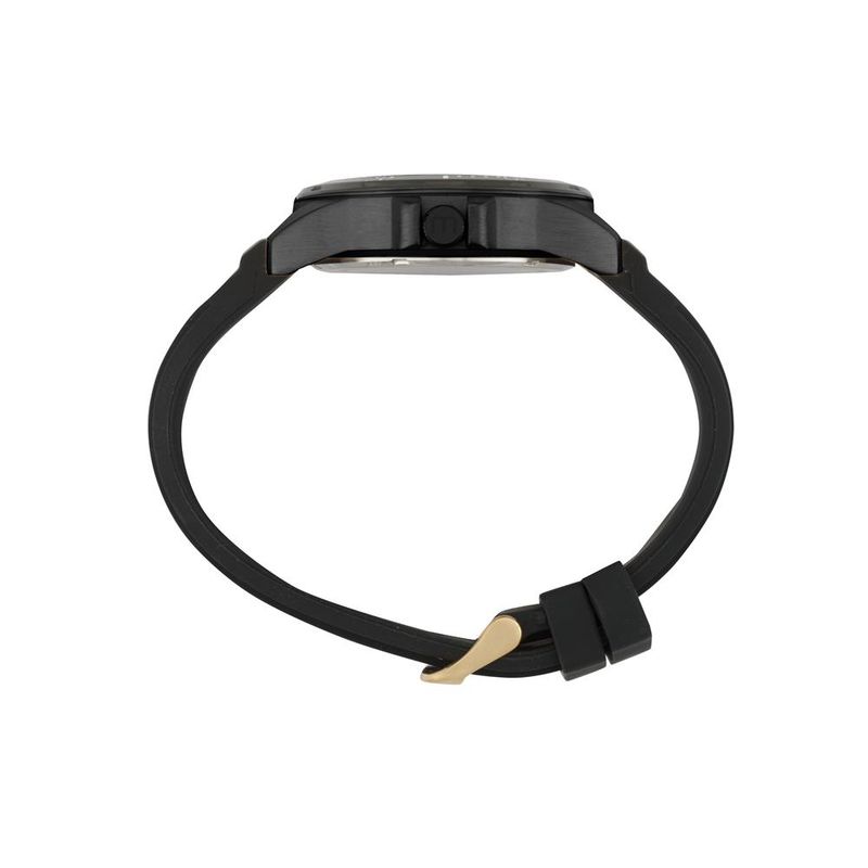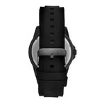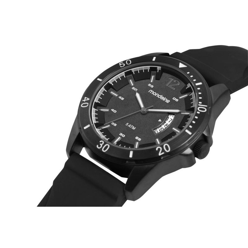 DESCRIÇÃO DO PRODUTO: Caixa de MetalPulseira de Silicone PretaVidro de Cristal MineralFundo RosqueadoResistente à Água 5 AtmDiâmetro / Largura da Caixa: 46.00 MMFunção: Analógico, CalendárioMostrador Preto com númeroAro Fixo PretoAlimentação do Maquinário: BateriaGarantia de 1 Ano