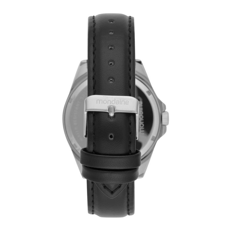 DESCRIÇÃO DO PRODUTO: Caixa de MetalPulseira de Couro Ecológico PretoVidro de Cristal MineralFundo RosqueadoResistente à Água 5 AtmDiâmetro / Largura da Caixa: 42.00 MMFunção: AnalógicoMostrador PrateadoAlimentação do Maquinário: BateriaGarantia de 1 Ano