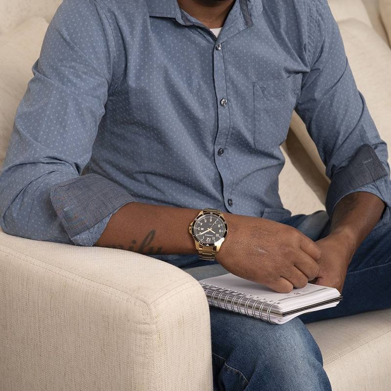 DESCRIÇÃO DO PRODUTO: Caixa de AçoPulseira de AçoVidro de Cristal MineralFundo RosqueadoResistente à Água 5 AtmDiâmetro / Largura da Caixa: 46.00 MMFunção: Analógico, CalendárioMostrador Preto com todos númerosAro Fixo PretoAlimentação do Maquinário: BateriaGarantia de 1 Ano