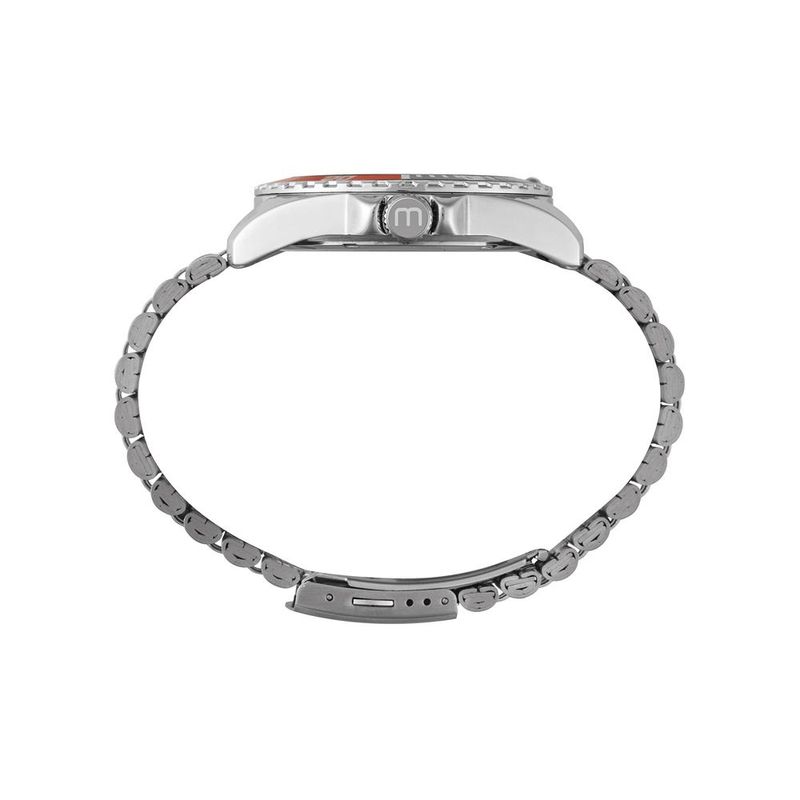 DESCRIÇÃO DO PRODUTO: Caixa de MetalPulseira de AçoVidro de Cristal MineralFundo RosqueadoResistente à Água 5 AtmDiâmetro / Largura da Caixa: 45.00 MMFunção: AnalógicoMostrador Preto com todos os númerosAro Fixo Preto e VermelhoAlimentação do Maquinário: BateriaGarantia de 1 Ano