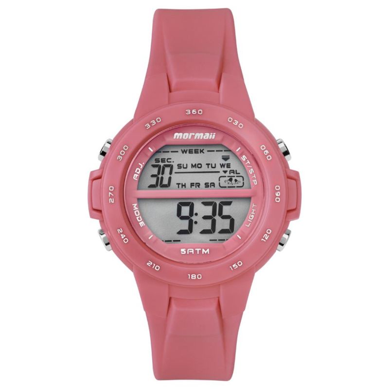 Descrição do Produto: Caixa de Polímero RosaPulseira de poliuretano RosaFundo ParafusadoResistente à Água 5 ATMDiâmetro / Largura da Caixa: 39.00 MMFunções: Digital, Cronógrafo, Iluminação, Alarme, CalendárioVidro: AcrílicoAlimentação do Maquinário: BateriaMostrador rosa com detalhes em brancoGarantia de 1 Ano