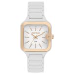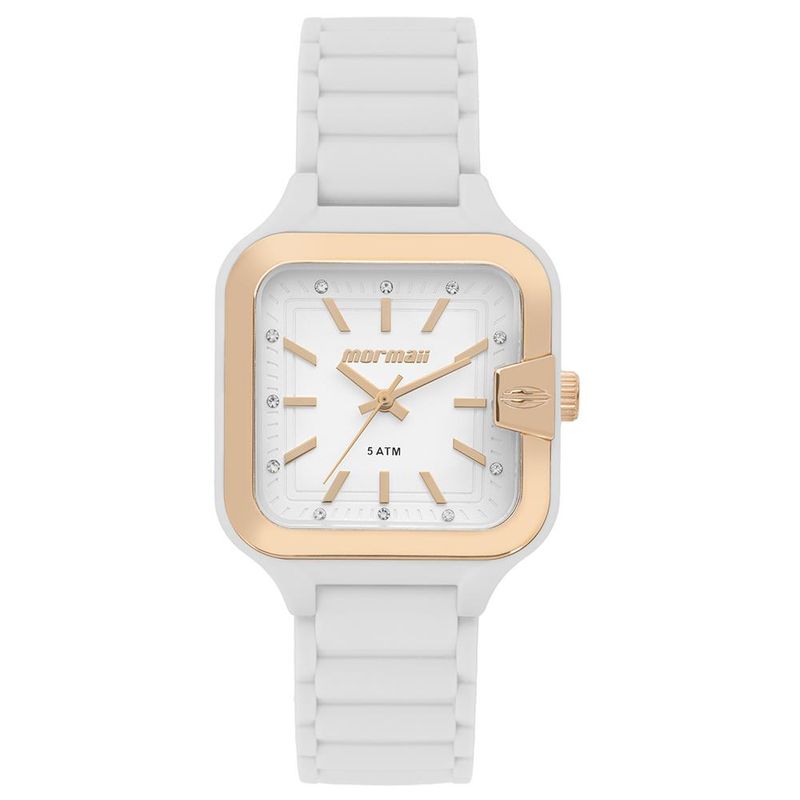Descrição do Produto: Caixa de Polímero BrancaPulseira de Silicone BrancaFundo ParafusadoResistente à Água 5 ATMDiâmetro / Largura da Caixa: 34.00 MM x 36.00 MMFunções: AnalógicoVidro: AcrílicoMostrador Branco com detalhes em douradoAro Externo Fixo DouradoAlimentação do Maquinário: BateriaGarantia de 1 Ano