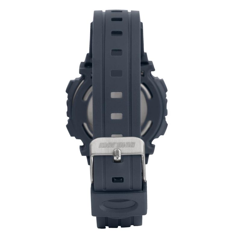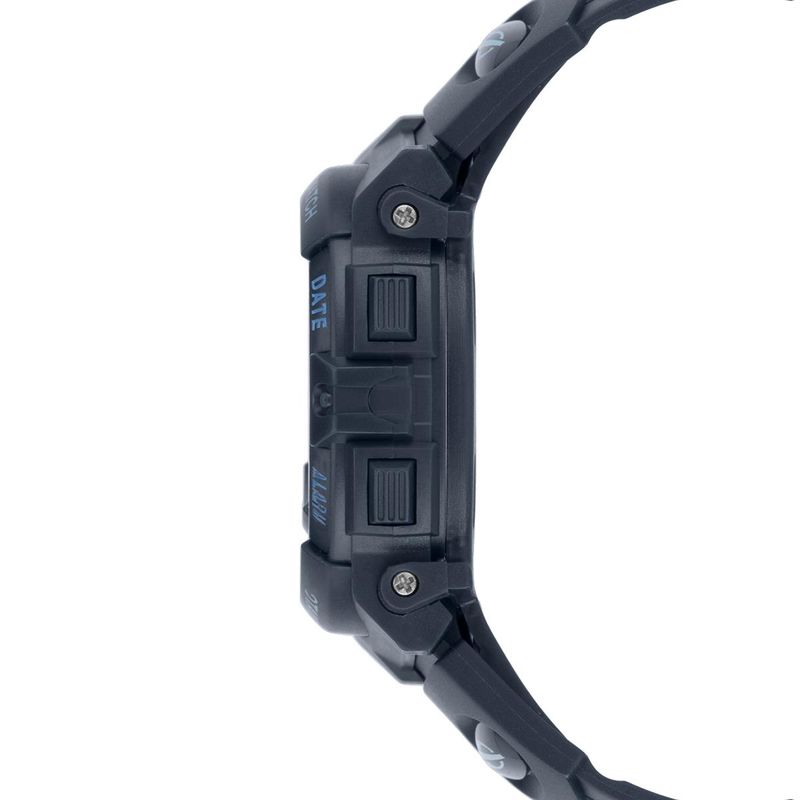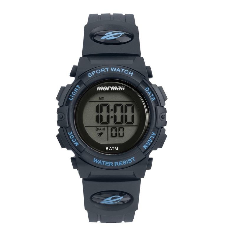 Descrição do Produto: Caixa de Polímero AzulPulseira de Poliuretano AzulFundo de Aço ParafusadoResistente à Água 5 ATMDiâmetro / Largura da Caixa: 38.00 MMFunções: Digital, Alarme, Cronógrafo, IluminaçãoVidro: AcrílicoMostrador Preto com Detalhes brancosAlimentação do Maquinário: BateriaGarantia de 1 Ano