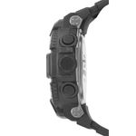 Descrição do Produto: Caixa de Polímero Preta com CinzaPulseira de Poliuretano PretaFundo de Aço ParafusadoResistente à Água 10 ATMDiâmetro / Largura da Caixa: 54.00 MMFunções: Digital, Alarme, Cronógrafo, Iluminação, Timer, Dual TimeVidro: AcrílicoMostrador Preto com detalhes em brancoAlimentação do Maquinário BateriaGarantia de 1 Ano