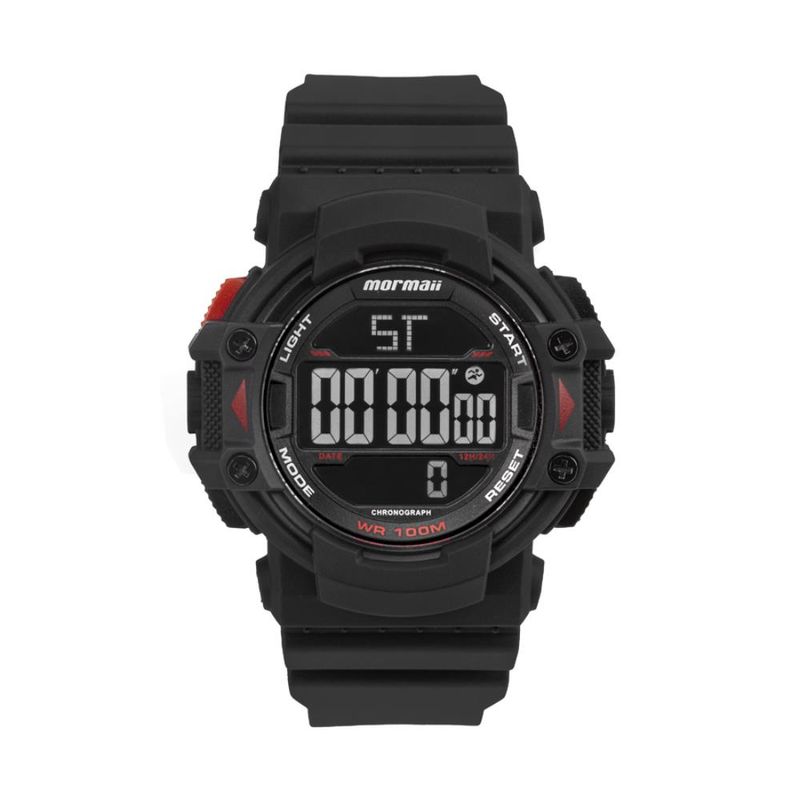 Descrição do Produto: Caixa de Polímero Preta com VermelhoPulseira de Poliuretano PretaFundo de Aço ParafusadoResistente à Água 10 ATMDiâmetro / Largura da Caixa: 49.00 MMFunções: Digital, Alarme, Cronógrafo, IluminaçãoVidro: AcrílicoMostrador Preto com detalhes brancosAlimentação do Maquinário BateriaGarantia de 1 Ano