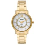 Marca: Orient Modelo: Eternal Gênero: Feminino Mecanismo: Quartz Tipo: Analógico Formato: Redondo Pulseira: Aço Cor: Dourado Tamanho da Caixa: 3,2 cm Resistencia: 5ATM Garantia : Este relógio foi adquirido junto ao representante legal e possui 12 Meses de Garantia em toda Rede de Assistência Técnica no país.
