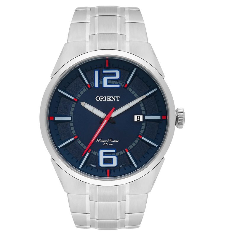 Gênero: Masculino Estilo: Casual Tamanho: G Alimentação: Bateria Material da Caixa: Aço Material da Pulseira: Aço Cor do Relógio: Prateado Cor do Mostrador: Azul-escuro Tipo de Vidro: Cristal Mineral Resistência à água: 5 ATM Medida da Caixa: 44 mm Medida da Pulseira: Não especificado Formato da Caixa: Redondo Outras funções: Calendário analógico