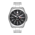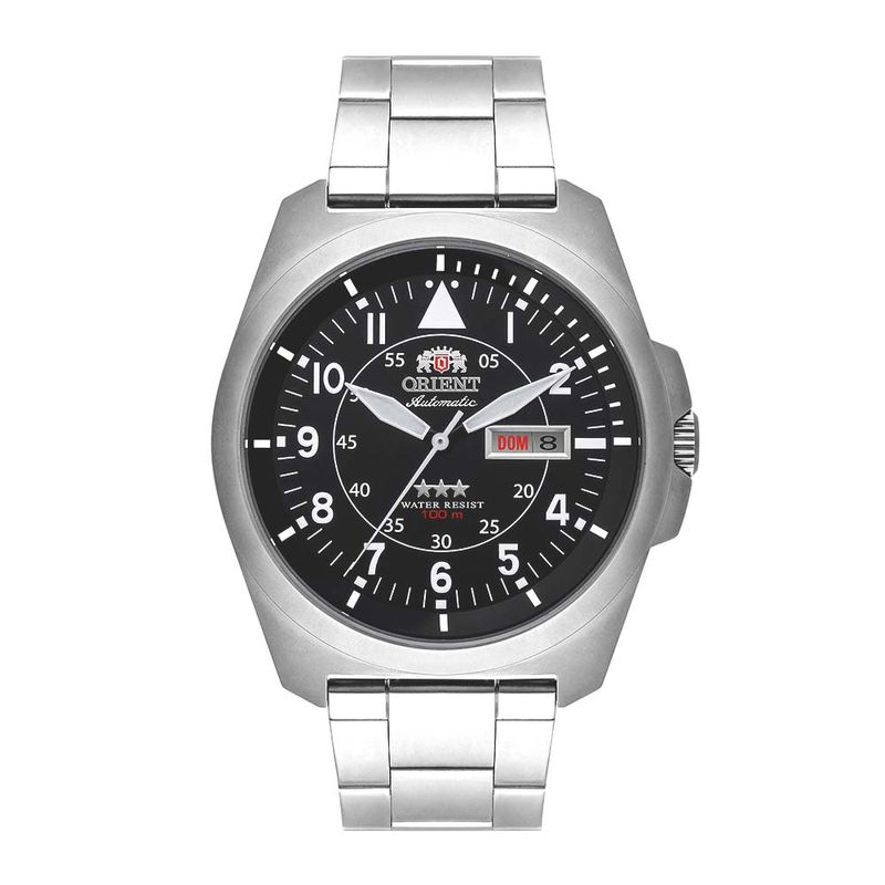 Relógios Orient. Fundada em julho de 1950, a Orient é representante da tradição japonesa na arte de fazer relógios, se notabilizando pela concepção e construção de artigos com qualidade e beleza. Marca: Orient Gênero: Masculino Visor: Preto Vidro: Cristal Mineral Resiste à água: 10ATM Diâmetro da Caixa: 46mm Caixa: Aço Cor da Caixa: Prata Pulseira: Aço Cor da Pulseira: Prata Características: Automático, calendário.
