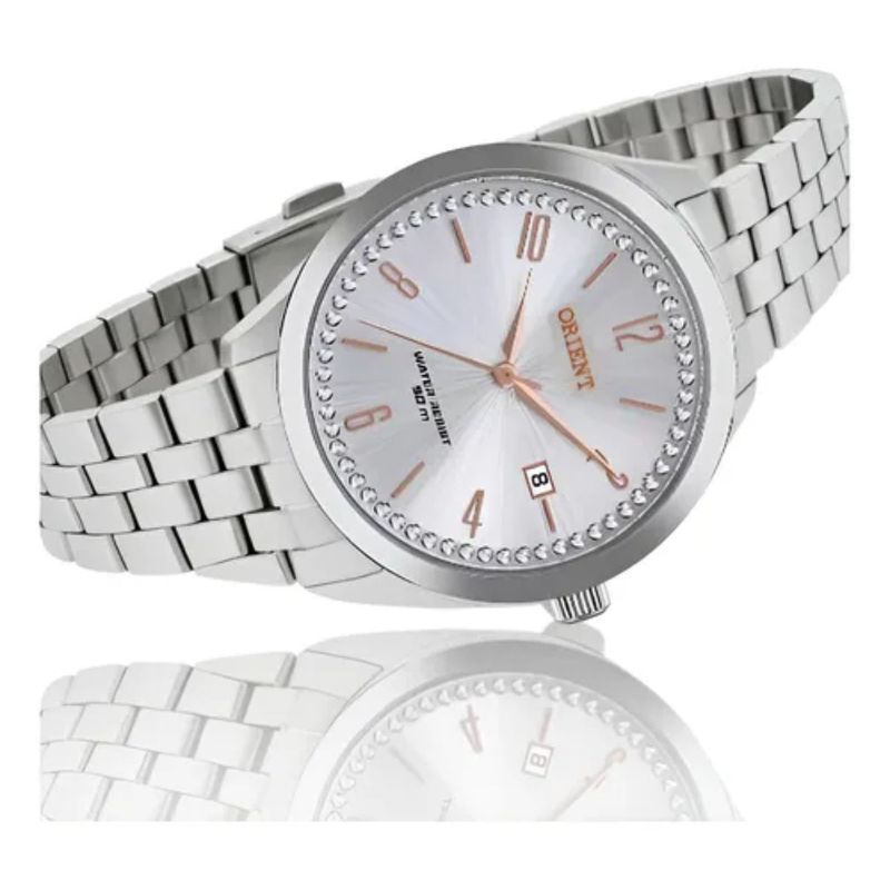 Descrição Relogio Orient feminino prata com números e calendário aço inox FBSS1193 S2SX Medida da caixa: 38 mm (medida sem a coroa) Medida da caixa: 40 mm (medida com a coroa) Espessura caixa: 9,1 mm Peso: 87 gramas Cor da Caixa: Prata Cor da pulseira: Prata Cor do aro: Prata Cor do mostrador: Prata Material da caixa: Aço Inox Material da pulseira: Aço Inox Mecanismo: Analógico Pulseira ajustável: Sim Calendário: Sim Aro interno em cristais: Sim Fundo rosqueado: Sim Vidro: Cristal Mineral Máquina: Quartz (Movido a Bateria) RESISTÊNCIA A ÁGUA: 50m (5atm) Pode lavar as mãos? SIM Pode tomar banho de chuveiro? SIM Pode usar em piscina: SIM